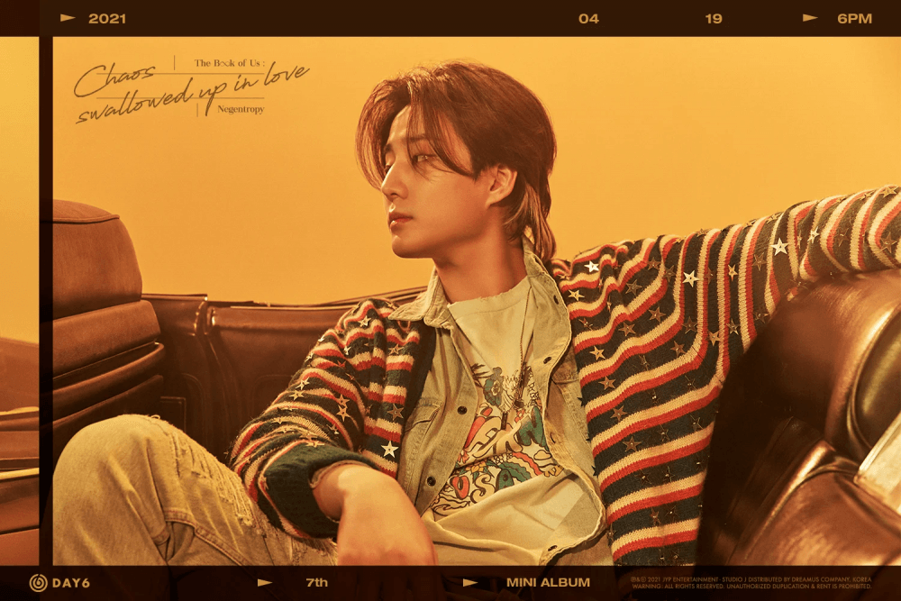 DAY6 já lançou imagens teasers de três membros – Dowoon e Wonpil . Os teasers individuais de Jae e Young K fazem parte do quarto conjunto de imagens conceituais lançadas pelo boy group.Os rapazes também posaram no mesmo cenário que os outros membros e mostraram seu carisma na frente das câmeras.