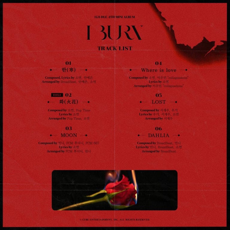 (G) I-DLE revelou a lista de faixas de seu mini álbum “I Burn”.